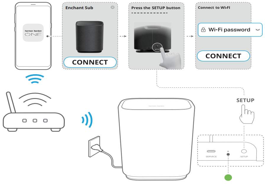 - Connect the subwoofer to the same network as your Enchant soundbar.