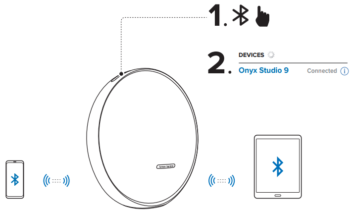 With the Harman Kardon One app on your Android™ or iOS device, you can set up a multi-channel sound system by wirelessly pairing your Enchant Sub with: Enchant 900 / 1100 (soundbar, sold separately): to enhance the bass performance. You can also check the Harman Kardon ONYX Wireless Speaker System manual for more setup tips and features.