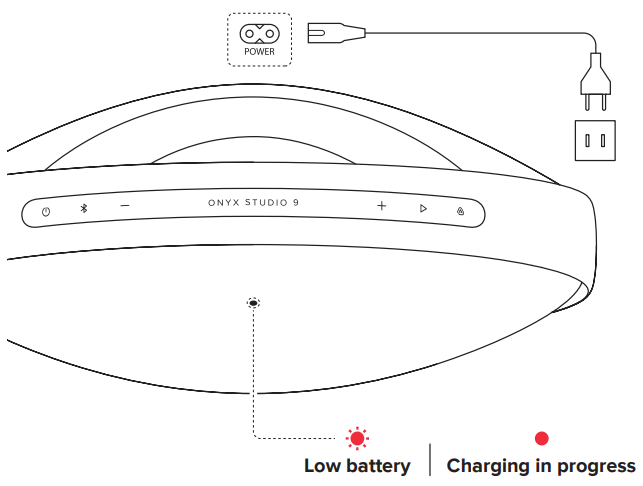 The LED light at the speaker’s base or surrounding the Power button will show the battery level when the device is turned on. For an estimated battery reading, you can also look at your device’s Bluetooth settings.