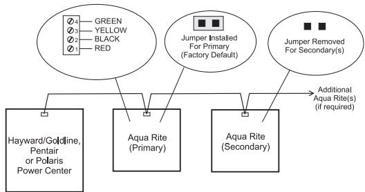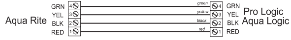 Optional Hayward, Pentair a,, nd Polaris controls: The Hayward, Pentair, and Polaris controls use a 4-wire connection to communicate with the AquaRite and can be wired up to 500′ apart. Any outdoor-rated 4-conductor cable can be used. Refer to each manufacturer’s instructions and the wiring diagrams below for proper wiring connection to the AquaRite.