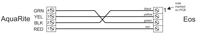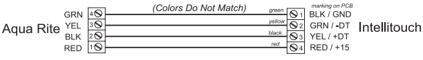 Pentair – Attach wires to opposite-numbered screw terminals as shown below. Note that the colors marked on the Pentair PCB do not match the AquaRite.