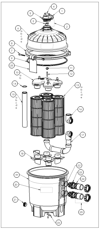 This product should be installed and serviced only by a qualified pool professional.Hayward-C2030-Top-Manifold-Cartridge-Filters-Fig-1