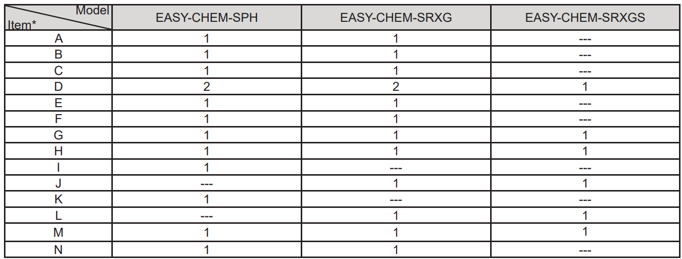 | Item | Easy Chem SPH | Easy Chem SRXG | Easy Chem SRXGS |
