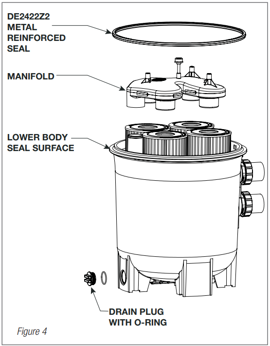 - Remove the top Manifold, which is exposed when HAYWARD HCF7030C HCF Cartridge Filter the upper filter body is removed. (Fig 4)