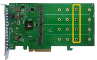 - These 4 screws are used to install the NVMe SSDs. The SSD7204 can support any M.2 form factor (2242, 2260, 2280, and 22110).