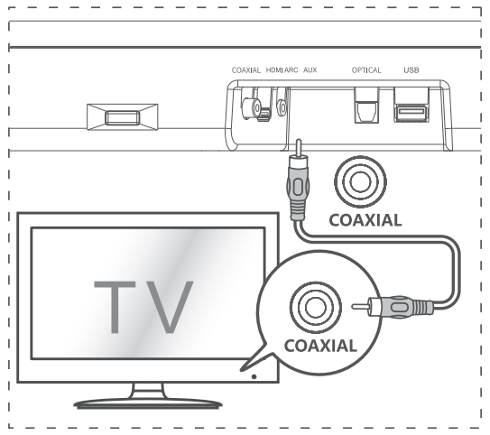 - Connect to a coaxial audio output on the TV.