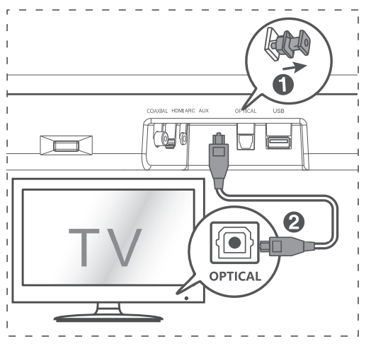 - Connect to an optical audio output on the TV.