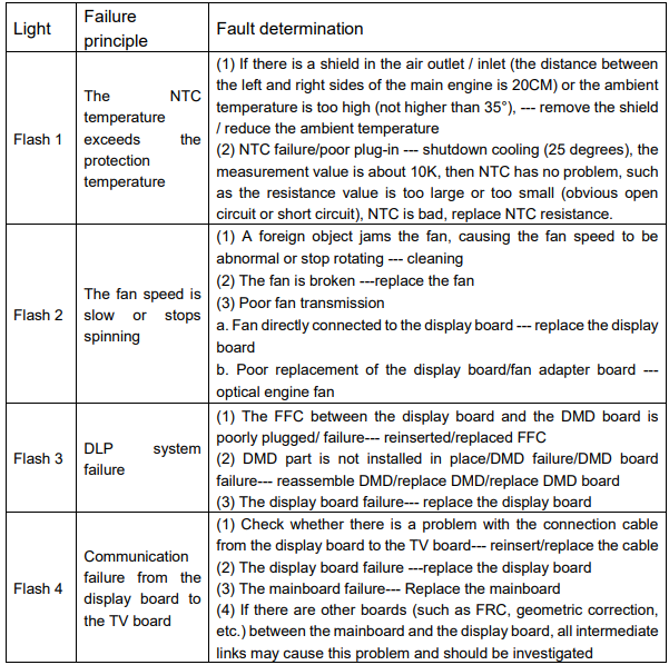 - Screen prompt: When powered on again, it will prompt “The previous shutdown was due to the high temperature of the Laser Cinema, and it was automatically turned off for protection.”