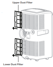 4. Remove the dust filter and clean it with water. Dry the dust filter and then reinstall it.