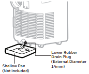 2. Place a shallow pan under the lower rubber Honeywell MO08CESWS6 Portable Air Conditioner drain plug. See diagram.