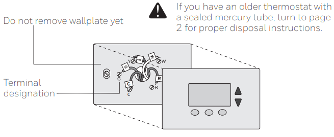 Remove the old thermostat, but leave the wallplate with wires attached.