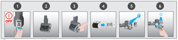 - Check for and remove any large debris from inside the HOOVER HF2 Cordless Vacuum Cleaner the nozzle. Carefully check for and remove any tangled debris from the comb.