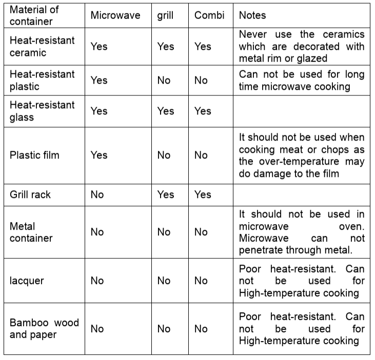 - Metallic containers for food and beverages are not allowed during microwave cooking.