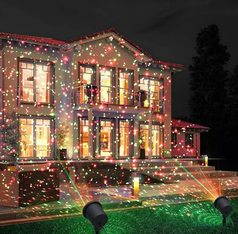 Outdoor laser light projectors are lights that can be used outside all year round. They are like the Christmas lights you see during the holidays. These are made to be used in the rain and snow. You can point them at your house, trees, patio, or pool. They will make really cool patterns. These lights are very strong. Can handle really cold temperatures, like -20 degrees, and really hot temperatures like 120 degrees.