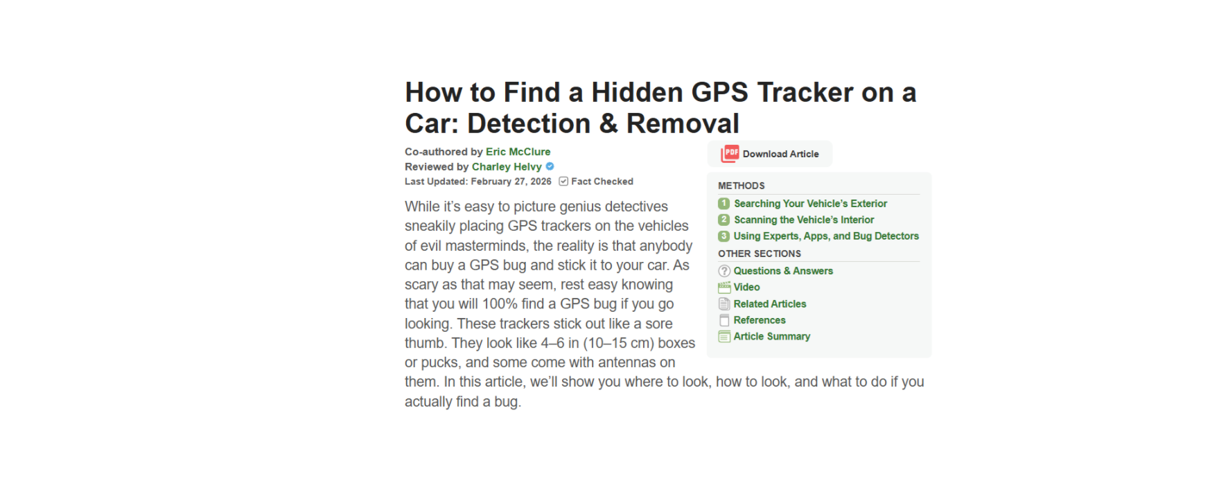 GPS trackers are devices that people can hide on cars to keep an eye on where they are going. They are often used for managing a large fleet of company vehicles or for insurance purposes. We got this information from people who know a lot about cars and how to keep them safe, such as the Electronic Frontier Foundation, from car repair forums like the Reddit one called r/MechanicAdvice, and from companies that make GPS trackers, like Tile and Spytec. They are small devices installed in cars.