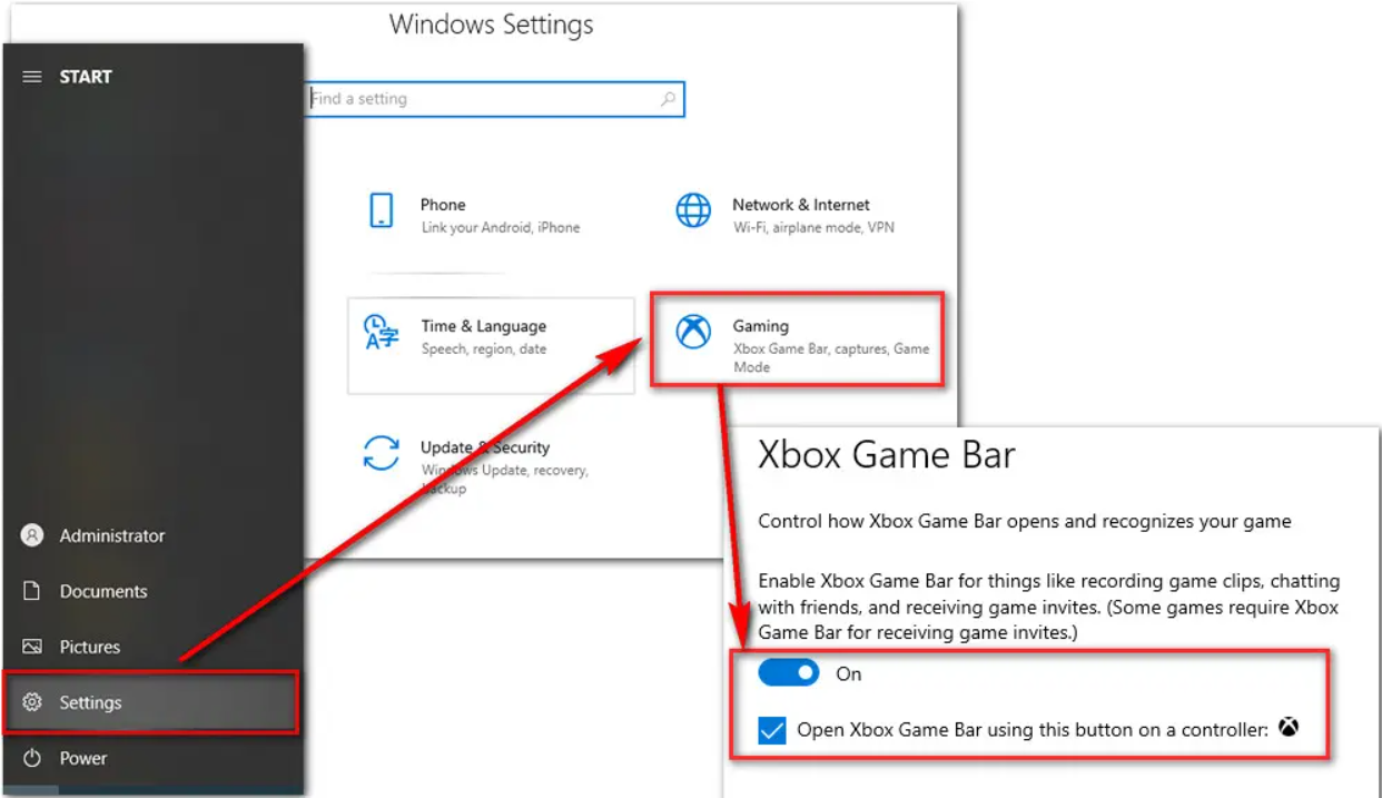 - SETTINGS: You can find the capture settings in the Game Bar.