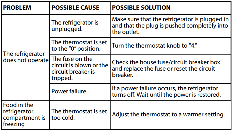 Literature accompanying your compact refrigerator.