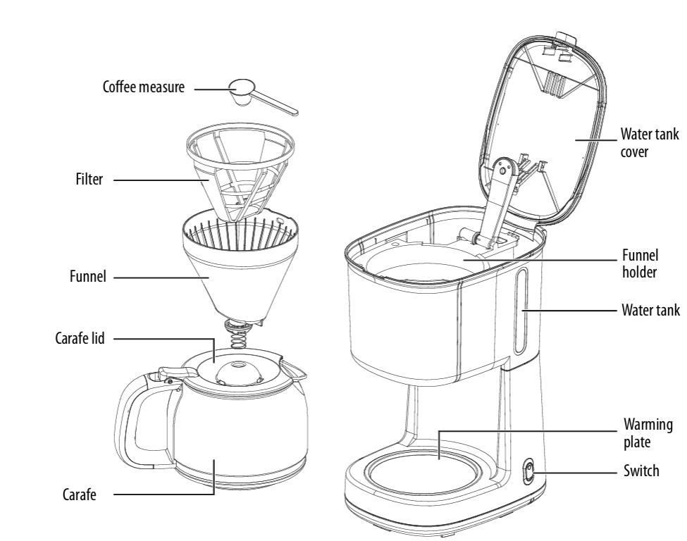 4. Allow to cool before putting on or taking off parts and before cleaning the coffee maker.
