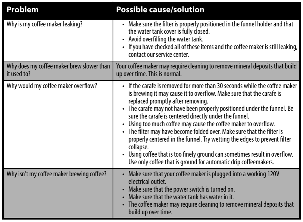 • Do not reuse coffee grounds and do not reheat brewed coffee.