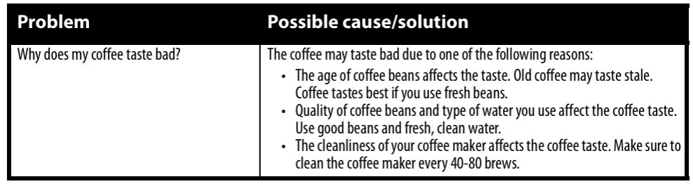 • Clean the coffee maker when over-extraction causes oiliness (small droplets of oil on the surface of brewed, black coffee). This may occur more frequently when you use dark, heavily roasted coffees.