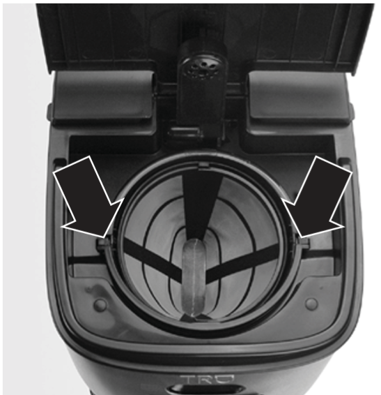 - When the coffee filter is in place and the hinged lid is lowered, the filter is locked in position by the lid hinge.