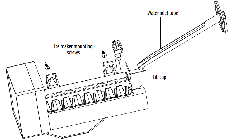 | The ice tray is not filling | The fill tube is not correctly seated in the fill cup. | Make sure that the fill tube is correctly inserted into the fill cup opening. |