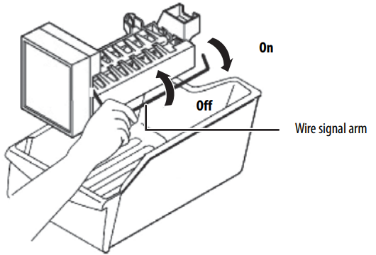 - To turn off the ice maker, raise the wire signal arm until it locks in the “up” off position.