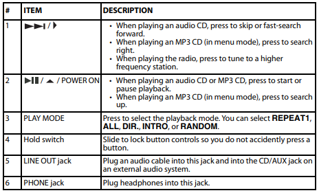 - When your CD player turns off, all settings, such as program and playing modes, are erased.