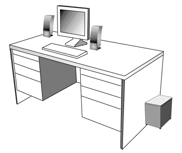 For deeper bass, place the subwoofer on the floor next to your desk or entertainment centre. The satellite speakers should be placed at ear level, arm’s length apart, and slightly inclined towards you.