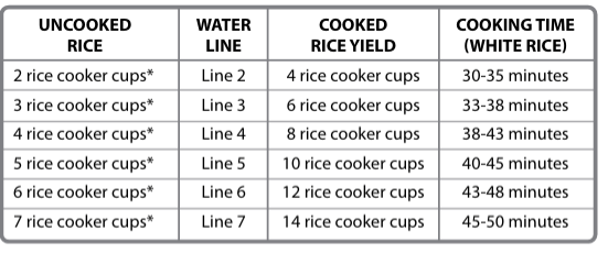 - Unplug the rice cooker when it’s not in use. Note: These steaming charts are for reference only. Actual cooking times may vary.