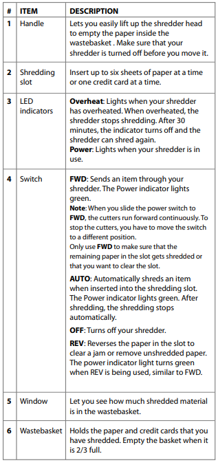 - Slide the switch to REV to remove extra paper or INSIGNIA NS-S6CCBK2 6-Sheet Cross Cut Shredder a credit card from your shredder.