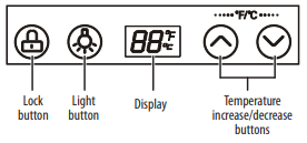 When you plug in your cooler for the first time, the display turns on for three seconds, followed by a start-up tone. You can now operate the control panel. When locked, the display turns off if no key is pressed for 30 seconds. The display turns on again when any key is pressed.
