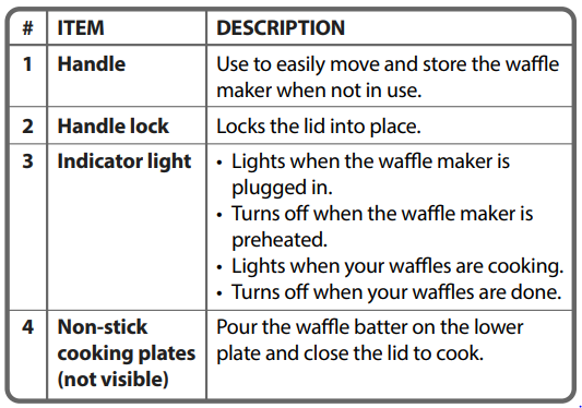 - Do not operate the waffle maker with a damaged cord or plug, or after the waffle maker malfunctions, or has been damaged in any manner.