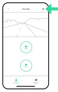 In the top right corner of the Dash Cam home screen (Live View) in the iOttie Connect App, you will find the Settings icon( ) where you can make changes and adjustments to the Device Settings.