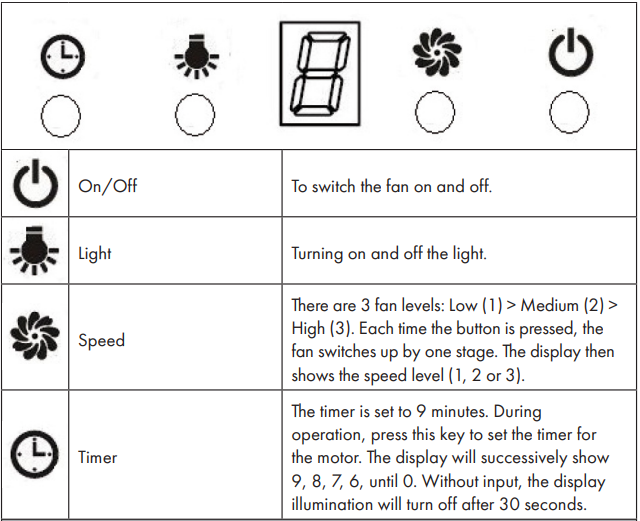 - After connecting to power, the control panel will KLARSTEIN 10030272 LIMELIGHT Range Hood be lit. The light will shut off automatically after 30 seconds if without no operation.