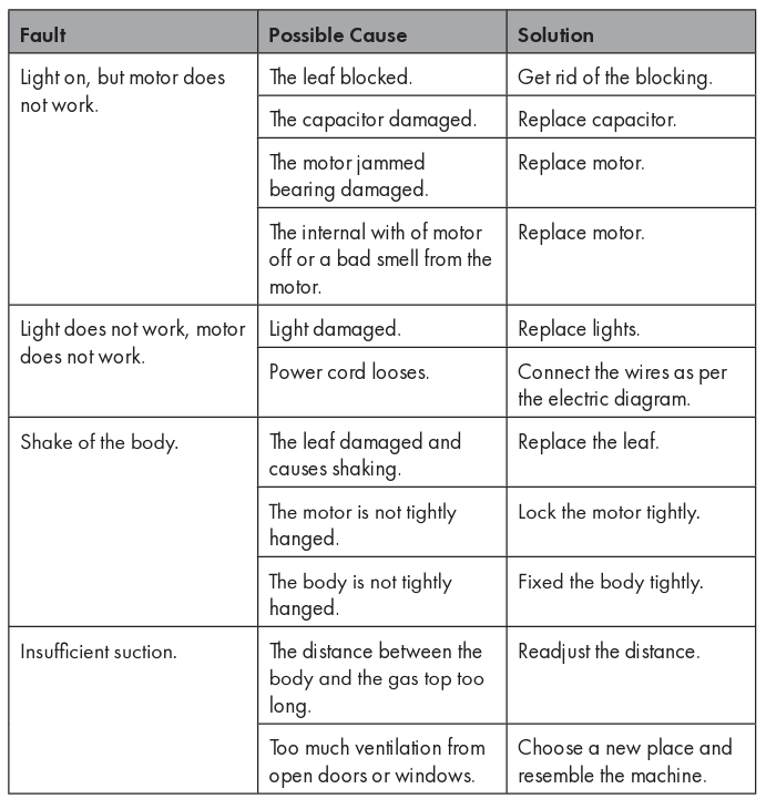 - Clean the cooker hood according to the instruction manual and keep the cooker hood from the danger of burning.