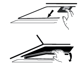 - Before inserting the activated carbon filter, pull the power plug out of the socket. To be able to install the filter, you must first remove the grease filter. Press the fastener and pull it down.