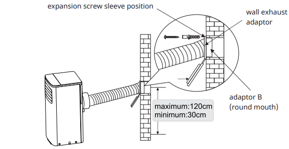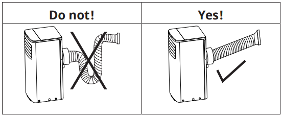 - According to the actual needs, the exhaust duct can be moderately compressed and tensed, but cannot be arbitrarily stretched and bent.
