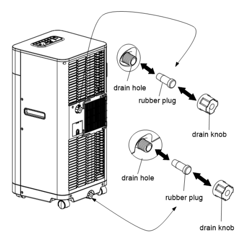 - When the container is almost full, replace the rubber plug in the drain hole and empty the water tray.