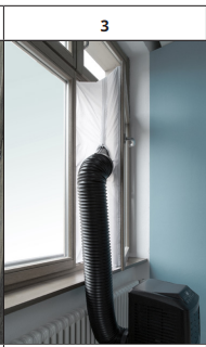 Stick the window sealing to the Velcro strips on the window frame first (starting with the top), then on the Velcro strips on the window. Push the exhaust air tube of the air conditioner through the hole, which can be adjusted in height and size.