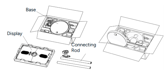 - Unpack and remove all parts, including the base, connecting rods, accessory bag, and foam cover.