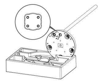 - Insert the base into the slot of the foam lower shell, ensuring the circular hole of the base is facing vertically upward.