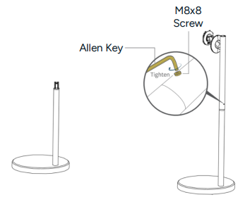 - Secure the 2 connecting rods together using the M8x8 screw. Tighten using the Allen Key to secure the connecting rod.