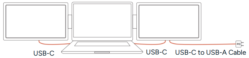 - If your laptop has x2 full-function USB-C or Thunderbolt 3/4 ports, connect both screens using the x2 provided USB-C cables.