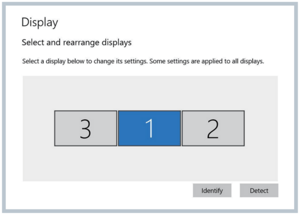 - To set different display modes for multiple screens, click 1/2/3 (use the ‘Identify’ button at the bottom to find each corresponding screen).