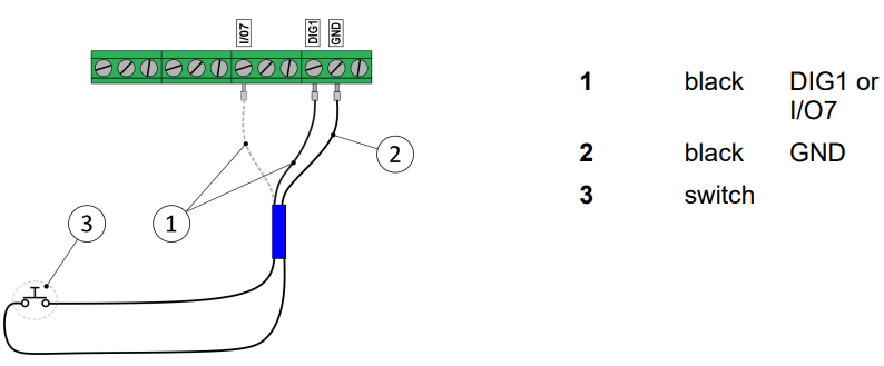 | Switch outputs (*) | 1 pc digital output, max 1 A, 40 VDC |