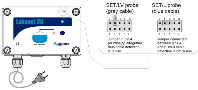 - Control unit and conductivity-based sensor Lokaset 20 control unit SET/LV or SET/L sensor