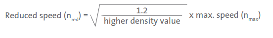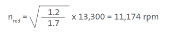 Where the density of the liquid is 1.7, the new maximum speed would be calculated as follows: