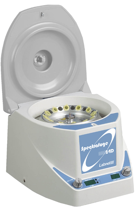 The Labnet Spectrafuge™ 24D Microcentrifuge is a small benchtop centrifuge designed for separation of various research samples. The motor is brushless and requires no routine maintenance. The Spectrafuge 24D is supplied with an 24 x 1.5/2.0 mL rotor for microsamples. Adapters are available for tubes smaller than 1.5 mL. The Spectrafuge 24D reaches speeds of up to 13,300 rpm/16,300 x g.