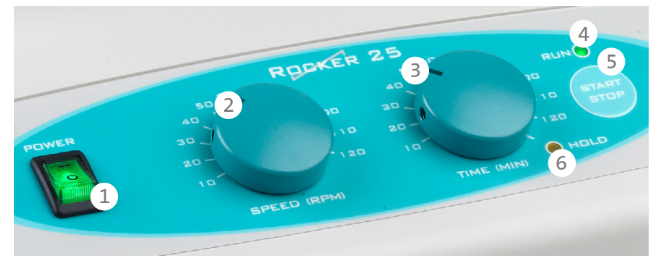 6. HOLD function – the yellow light illuminates and the shaker operates continuously